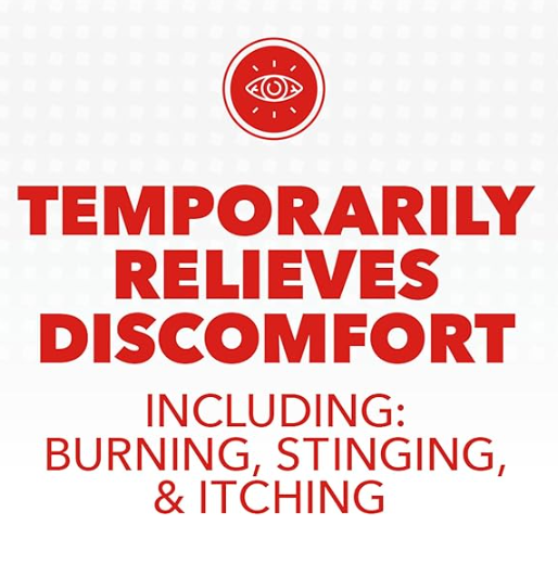 - Temporarily relieves discomfort due to minor irritations including burning, stinging, and itching in the eye